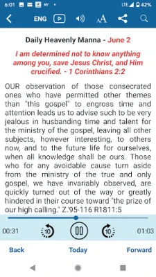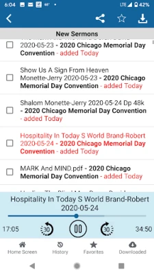 You have the option to download audio files and sermons and listen to them when you don't have an internet connection. You also have the option to add them to a favorites menu.