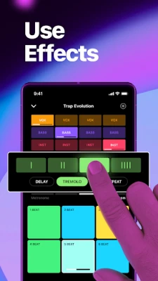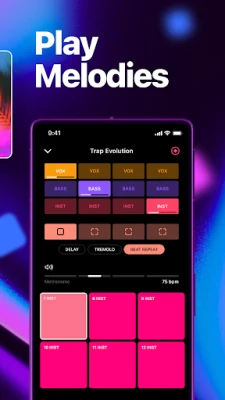 - Regular updates with trendy and HQ music - Variety of loops & one shot samples in every sound pack - Music session recording option - Professional delay, beat repeat and tremolo sound effects - ADS free