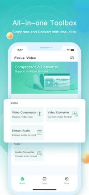 Focus Video is an efficient app that helps you to reduce video, music and picture file size with high quality kept. And convert their format to most common format as you want. It supports many formats, like MP4, MOV, WMV, MKV, RMVB, AVI, WEMB, MPG, 3GP, FLV, TS, FLAC, APE, MP3, JPG, PNG, GIF, WEBP, APNG, etc.