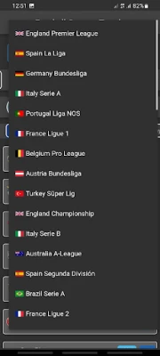 Champions League (Europe), Europa League (Europe), Premier League (England/Angleterre), Championship (England/Angleterre), League One (England/Angleterre), FA Cup (England/Angleterre), Argentina Superliga (Première division), Croatie Prva HNL, République tchèque (Première division), Spuer League (Grèce), Eredivisie (Netherlands/Pays-Bas), Eerste Divisie (Netherlands/Pays-Bas), , Bundesliga (Germany/Allemagne), Bundesliga 2 (Germany/Allemagne), Tipico Bundesliga (Autriche), Pro League (Belgique), First Division B (Belgique), Super Cup (Belgique), Superliga (Danemark), First Division (Danemark), Ligue 1 (France), Ligue 2 (France), Serie A (Italy/Italie), , Serie B (Italie), Serie C (Italie), Coppa Italia (Italie), Eliteserien (Norvège), Primeira Liga (Portugal), Premier League (Russie), Premiership (Escosse), La Liga (Spain/Espagne), Copa Del Rey (Spain/Espagne), Allsvenskan (Sweden/Suède), Premier League (Ukraine), Serie A (Brésil), Super Lig (Turquie)