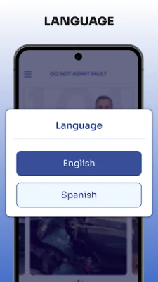 The Never Admit Fault 101 app is currently in two languages, English and Spanish it will explain the recommended steps to take what information to gather.
