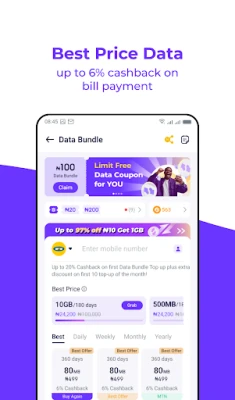 - Get up to 50% Discount on Data Bundle Purchases every day.
