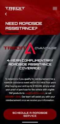 In case of a breakdown, the app offers integrated roadside assistance through the Tredit Advantage program, powered by Urgent.ly. Users can request help directly through the app, receive upfront estimates, and track the arrival of assistance in real-time.