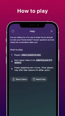 How to play: 1) Players select questions sets 2) Each player takes turns selecting one of 2 options 3) Player explaining own choice. Other players may offer their reasons for either option